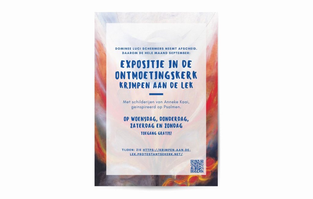 De kerkgemeenschap waar ik lid van ben, vraagt regelmatig of ik posters en flyers wil ontwerpen voor speciale diensten of evenementen. Zo kreeg ik onlangs de opdracht om een poster te ontwerpen voor een expositie van een kunstenaar.