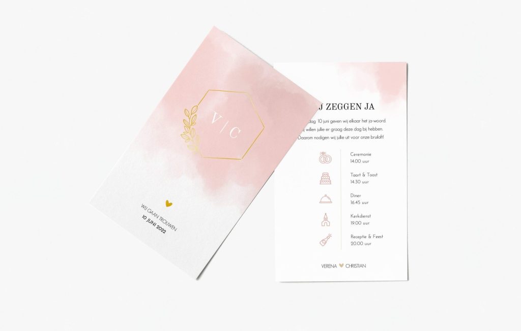 In 2022 zijn mijn man en ik getrouwd. Voorafgaand aan de bruiloft heb ik een trouwkaart ontworpen, zodat we deze naar alle genodigden konden sturen.